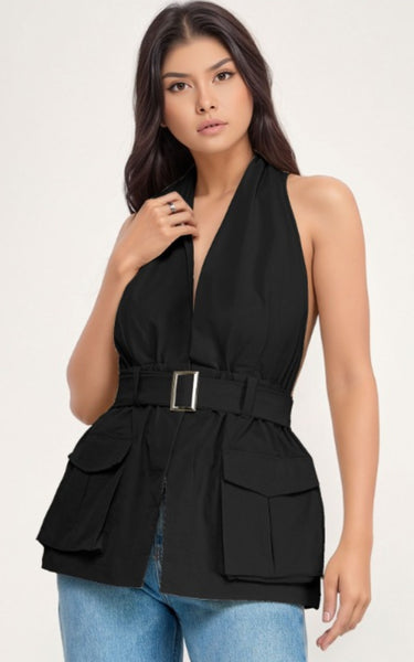 Meet the perfect blend of feminine allure and utility edge. The Safari Utility Halter features a flattering halter neckline with a softly draped front that highlights your shape while keeping it effortless. Designed with a cinched waist and adjustable belt, this piece defines your silhouette in all the right places. Functional utility pockets add a modern, fashion-forward touch—because style and confidence should always work together.